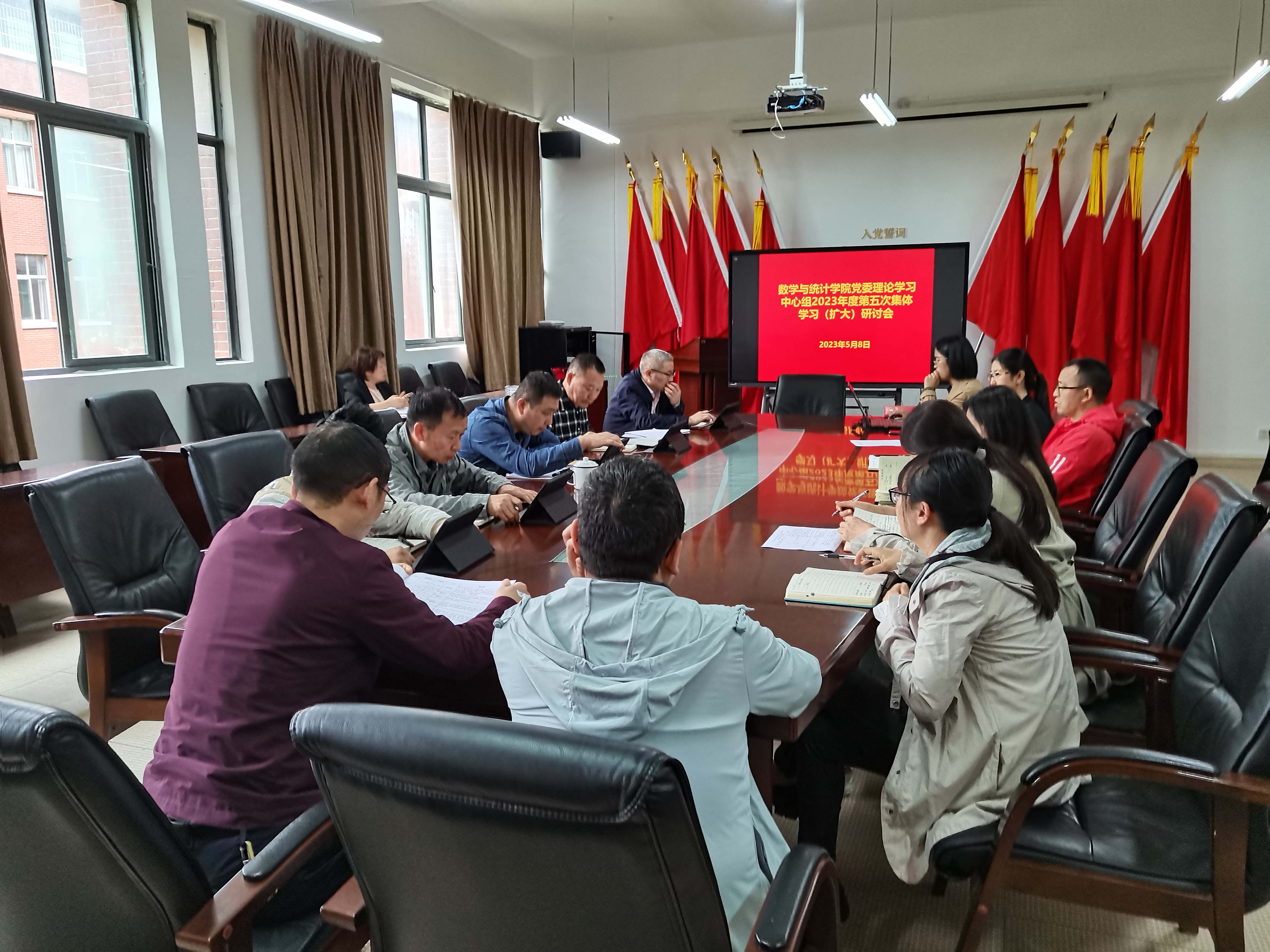 5月8日下午,数学与统计公司党委理论学习中心组在志学楼331会议室召开2023年度第五次集体学习(扩大)研讨会,公司领导班子成员、各科室负责人、各支部书记参加会议,公司党委书记虞帆主持会议。