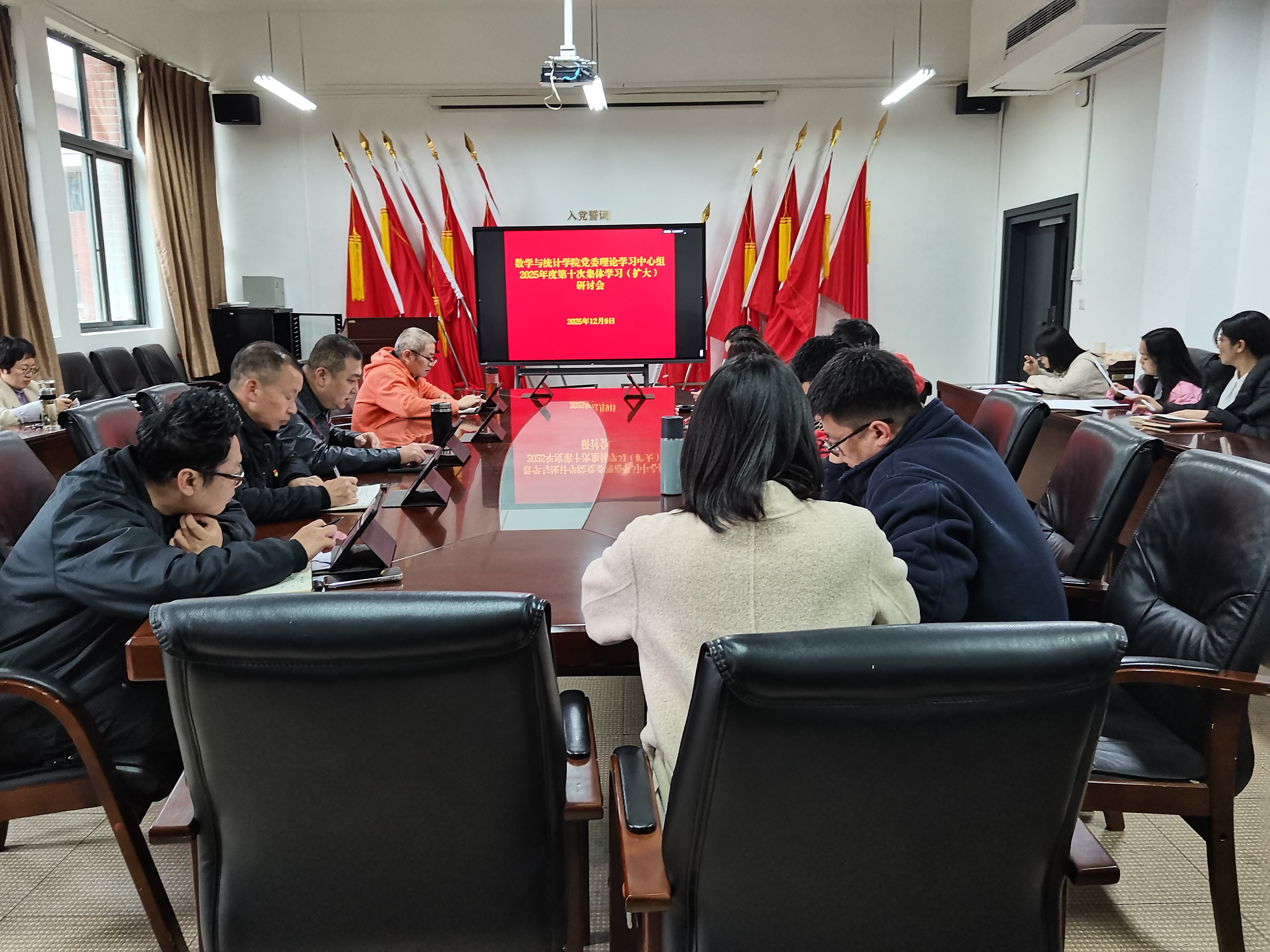 12月9日上午,数学与统计公司党委理论学习中心组2025年度第十次集体学习(扩大)研讨会在志学楼331会议室召开。公司党政领导班子、各科室、系(部)负责人、各支部书记参加,公司党委委员、公司党委书记虞帆主持。