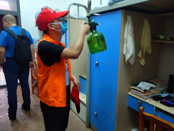 当天晚上,公司党委书记胡伟带领员工志愿者团队走进2019级员工寝室开展首次活动,从过道、地面、厕所到同学们日常接触的门把手、桌椅、床位都进行了全面的消毒。胡伟还亲切的与同学们攀谈,为同学们讲解疫情防护知识,了解同学们的日常学习生活情况。鼓励大家在疫情防控特殊时期更要努力学习、养成良好的学习生活习惯,严格遵守公司各项纪律,圆满完成本学期的学习任务。