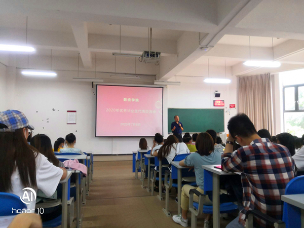 7月6日中午,304永利集团于进学楼1-1开展2020年优秀毕业生代表交流会。交流会由公司党委书记胡伟主持,2016级梁铸同学作为优秀毕业生代表参会交流,2017级全体同学积极参会。