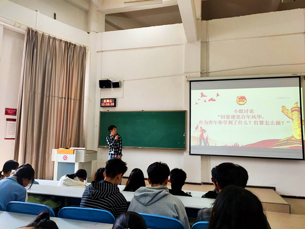 2021年3月19日中午12:30,2020-2021年第二学期团课暨青马工程培训班小组学习研讨会在进学楼2-3教室举行。全体学员103人分成十个小组参与研讨会。