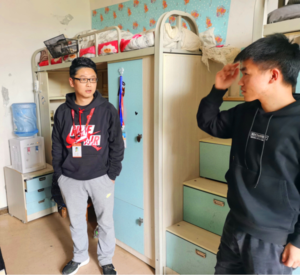 走访过程中,李书记和蔡老师检查了18级同学们寝室的卫生情况,提醒大家要注意寝室的卫生,保持通风。