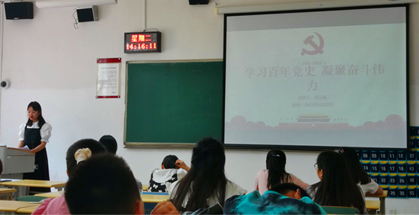 比赛伊始,陶朝英老师为本次大赛精彩致辞。参赛的同学们认真比赛,汇报自己对党的认识,深深表达出对党的热爱之情。活动结束,周剑云书记进行总结发言,希望同学们学史明理、学史增信、学史崇德、学史力行,以优异成绩向党的百年献礼。