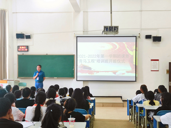 周剑云在开班仪式中强调,青马学员要充分认识“青马工程”培训的重大现实意义和战略意义,珍惜学习机会,努力提升自身素养和能力。接着,进行第一堂团课的授课,主题为《学史力行践初心 砥砺奋进开新局》。周书记结合时事,向同学们讲述了“孟晚舟回国经历”,他强调孟晚舟能够顺利平安地回国,是因为祖国是她最坚强的后盾,从这件事情上他告诉同学团结起来的中国人民不可战胜的,强大起来的中国不惧任何风雨,我们已走过千山万水,但仍需跋山涉水。