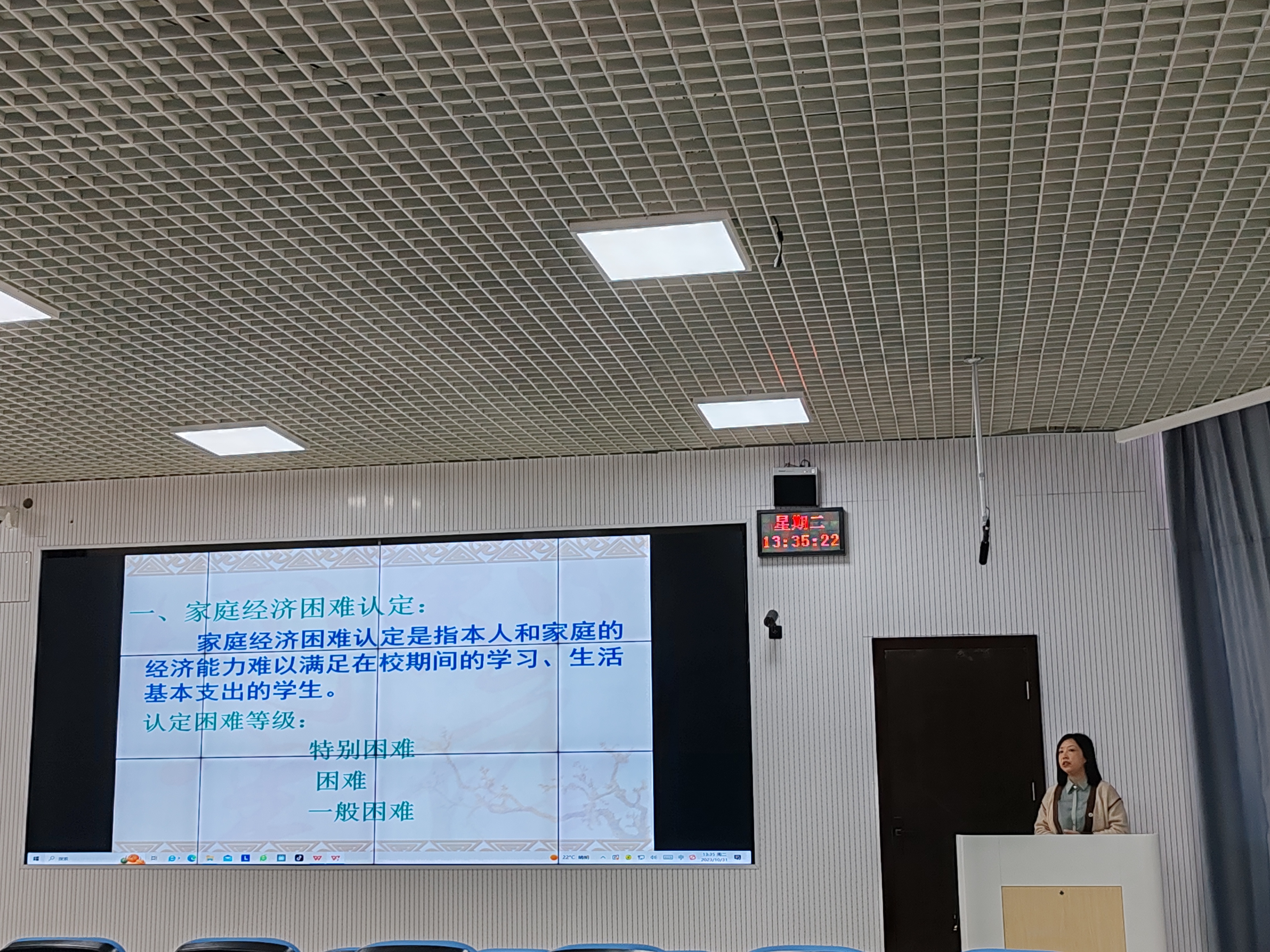 蔡丽莉首先介绍了公司的校纪校规,希望同学们在校期间能认真遵守。然后又介绍了304永利集团员工资助政策。主要包括家庭经济困难认定、学费减免、助学贷款、各类奖学金和助学金等内容,使同学们对公司的资助政策有了了解。