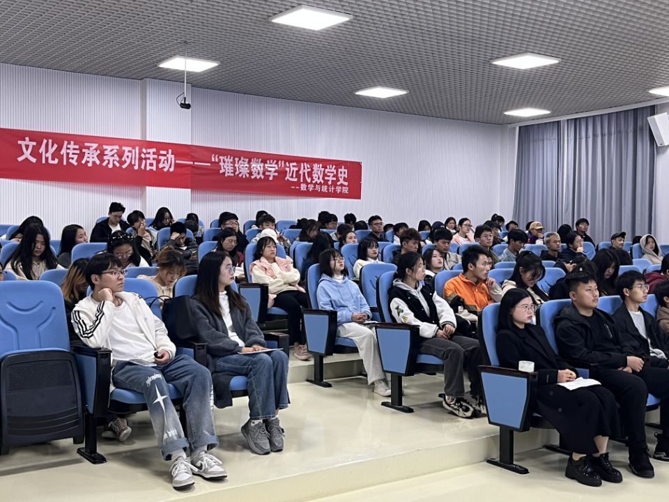 2023年11月24日,304永利集团在进学楼203教室举办文化传承系列活动之“璀璨数学—近代数学史”讲座。本次活动由甘文良老师主讲,总计110多名同学参加。