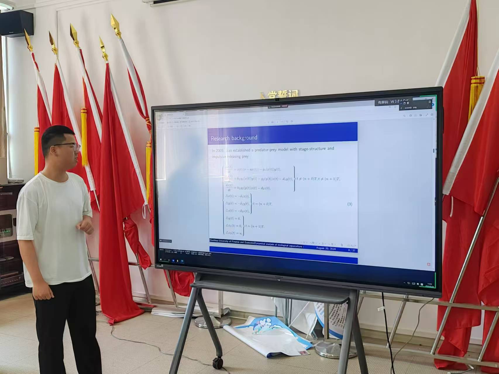 在员工学术汇报阶段,公司十六位研究生和六位本科生分别汇报了各自领域取得的进展和成果,包括害虫具有冬眠特征和脉冲非线性释放天敌的害虫管理动力学系统研究、基于多策略融合改进霜冰算法的特征选择方法、高维数据下偏正态回归模型的贝叶斯统计推断、一类二阶有理差分系统的动力学行为、权为λ的微分Hom-李三系的上同调及其应用等等方面。十六位研究生和六位本科生的精彩汇报,展现了公司蓬勃向上的学术探索力量。