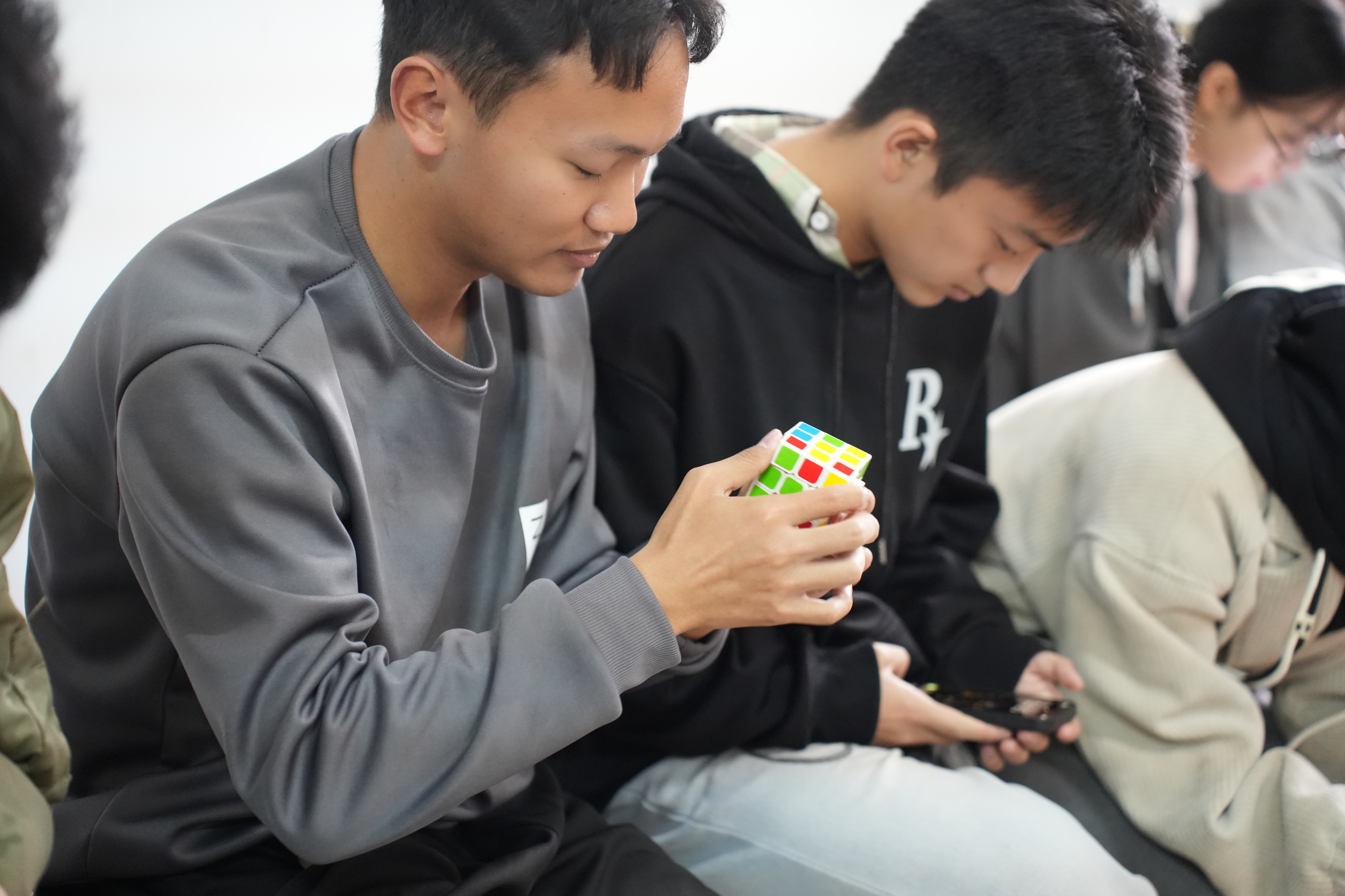 活动内容包含华容道、魔方、24点等经典数学游戏。活动现场,华容道赛区气氛热烈,选手们手指飞速移动滑块,争分夺秒为曹操“解围”,展现对最优解的深入探索;魔方区,彩色方块在选手手中快速翻转,复原过程尽显空间思维与手眼协调能力;24点游戏中,大家巧用四则运算组合数字,思维碰撞火花四溅。这些游戏不仅展示了员工的反应力、空间想象能力和快速记忆能力,还促进了同学们之间的交流。