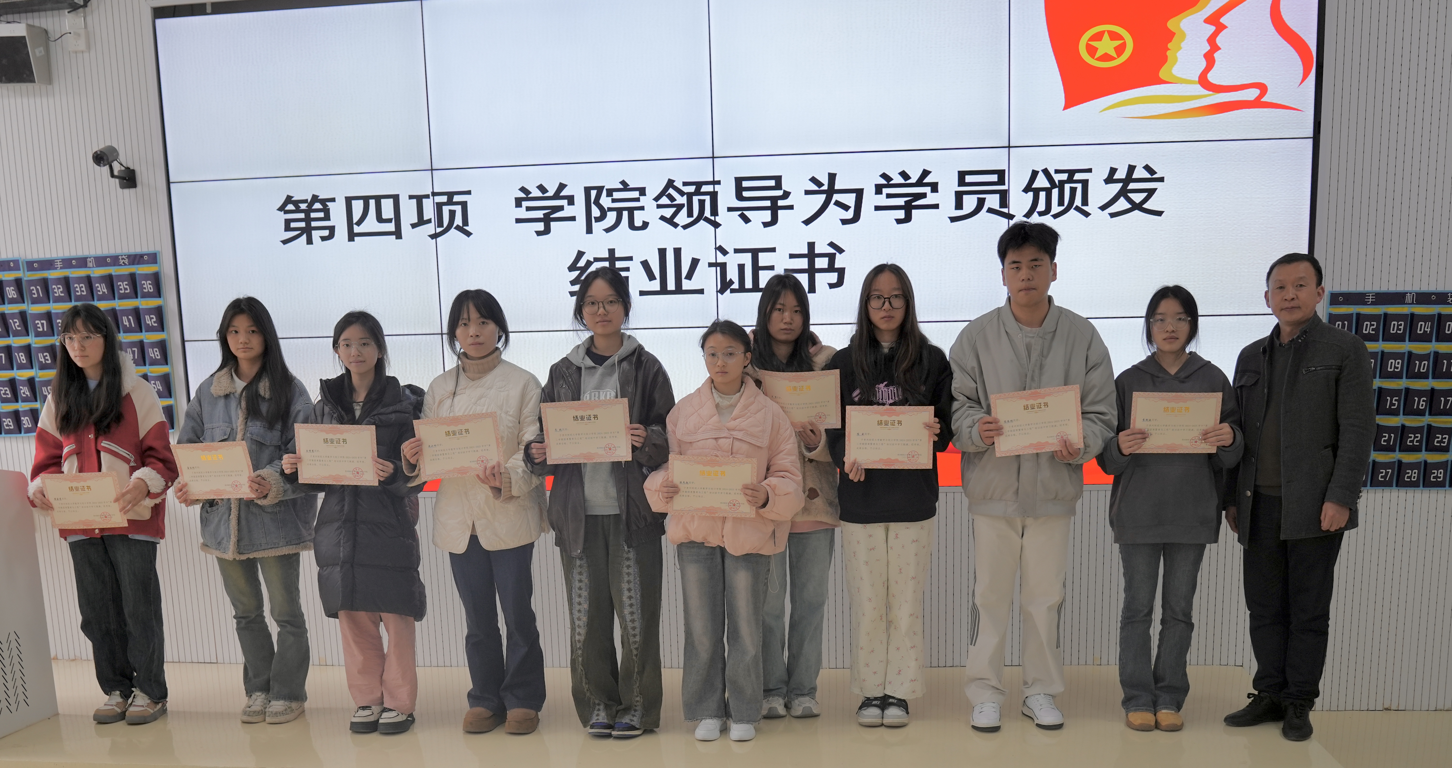 结业典礼上,朱吉韬为优秀学员颁发了结业证书,对他们在团课学习中的突出表现给予了表彰。学员代表袁嗣涵上台发言,分享了自己在团课学习中的收获与体会。接着,朱吉韬向所有学员们寄语,希望全体学员以青马精神为行动纲领,将理论学习与实践探索深度融合,在新时代新征程中持续发挥模范带头作用,勇担马克思主义理论的忠实传播者与青年先锋的职责使命。