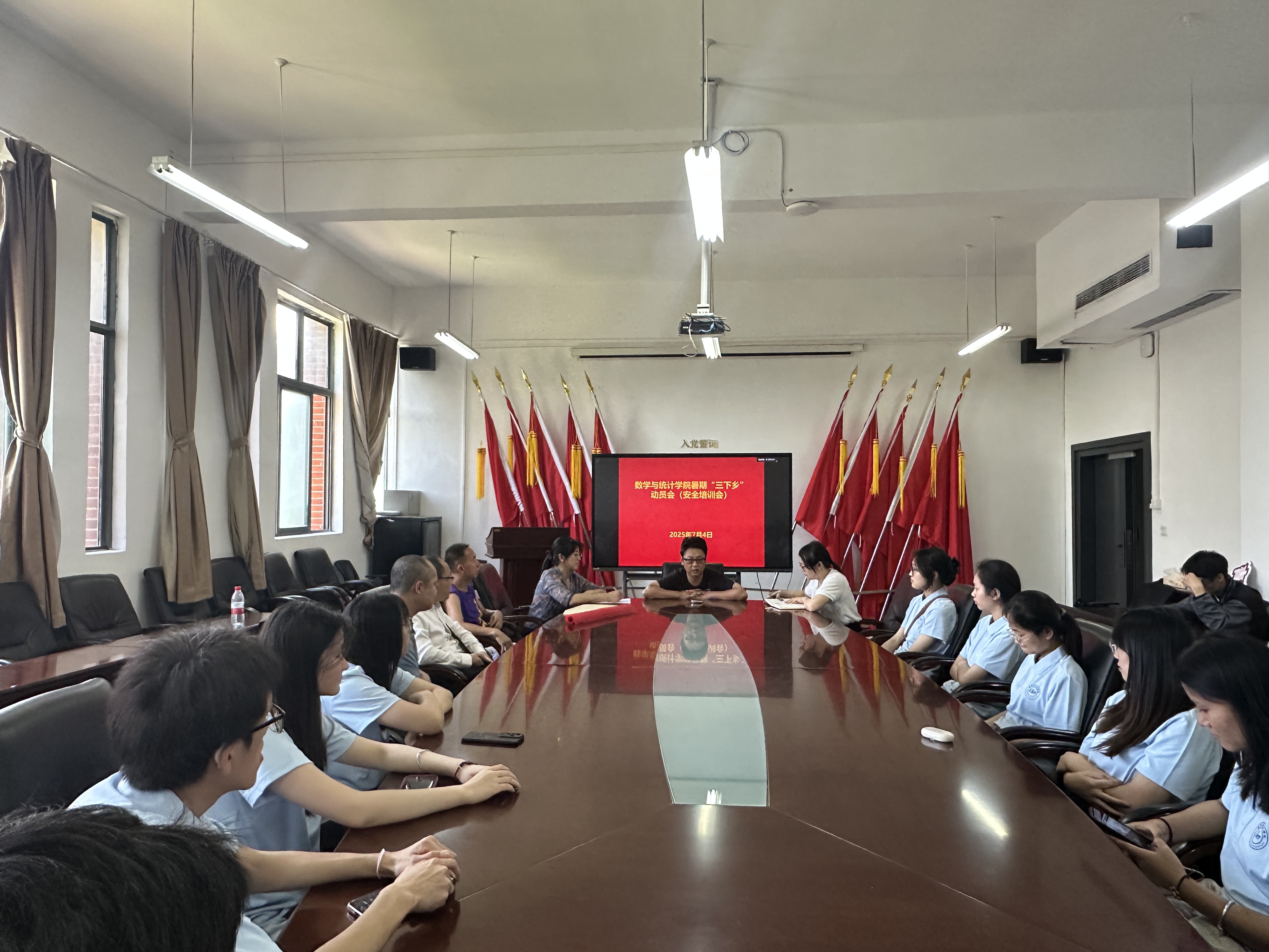 为了深入学习习近平总书记在贵州考察时的重要讲话精神,组织青年学子深入基层实践历练、增长见识才干、服务社会发展,7月4日,2025年“青春为中国式现代化挺膺担当”暑期“三下乡”社会实践活动出征仪式在志学楼331会议室举行。公司党委副书记李书、团委书记贺婧和带队老师陶朝英、刘轶中、甘文良、王腾毅,以及全体“三下乡”社会实践团队成员参加。