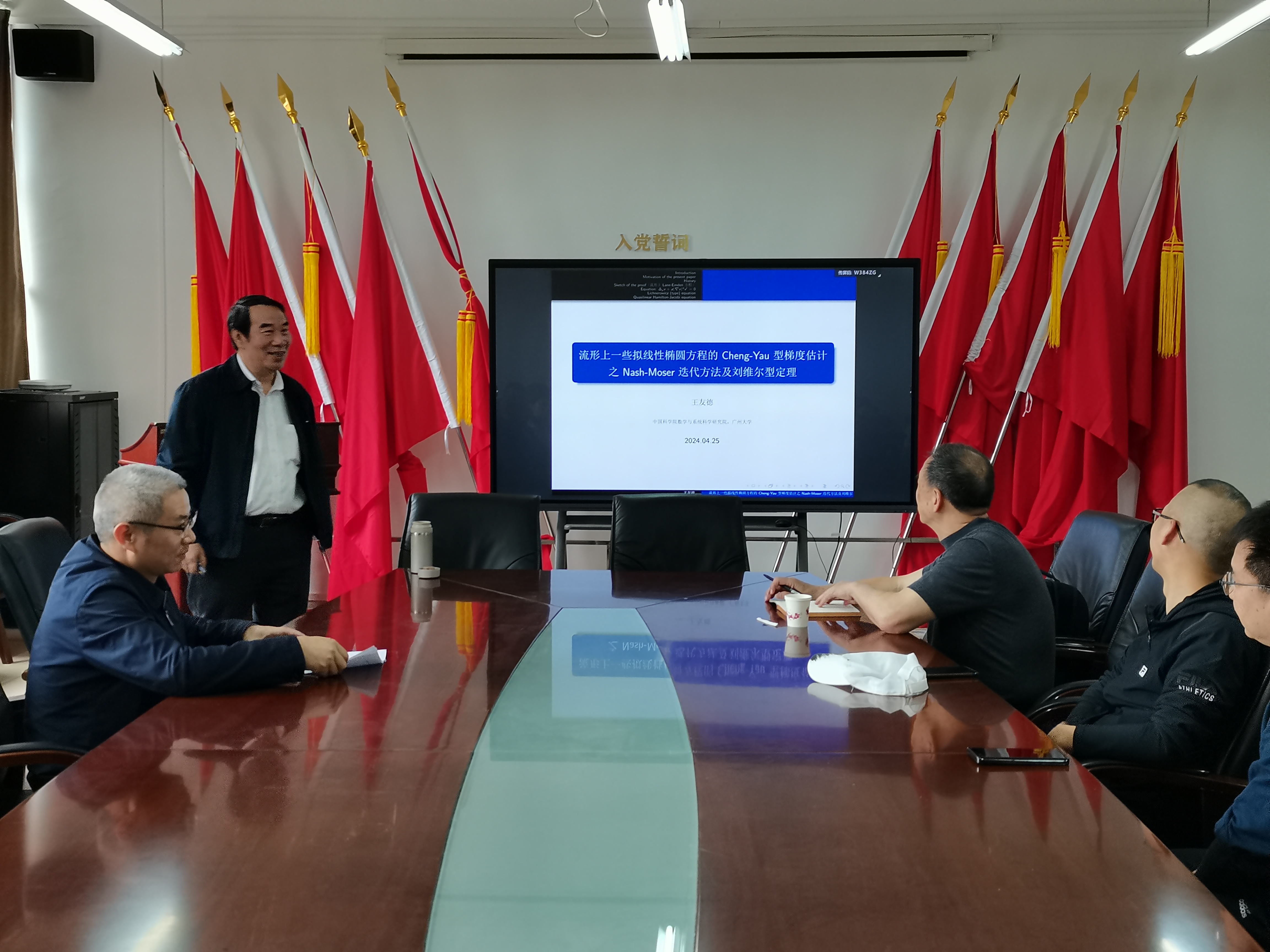 第75期讲座中,王友德教授首先介绍了流形上一些拟线性椭圆方程的Cheng-Yau型梯度估计两类主要的方法——Nash-Moser迭代方法及刘维尔定理以及相关发展历程;接着详细说明了如何使用Nash-Moser迭代方法对定义在流形上的一类具有未知函数一阶导数与其本身的幂乘积的拟线性退化椭圆方程正解得到最佳形式的统一的郑-丘(Cheng-Yau)型梯度估计,并讨论了这类方程解的局部及全局的相关性质;最后介绍了所得的结果改进或覆盖了前人已有的关于欧氏空间情形的一些相关结果。