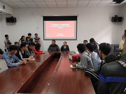 3月26日中午,304永利集团组织了2016级统计学专业员工参加了专业认知实习动员会,304永利集团统计系主任胡继魁、实践教学科舒瑜老师、实习基地——贵州省社情民意调查中心指导老师出席会议。