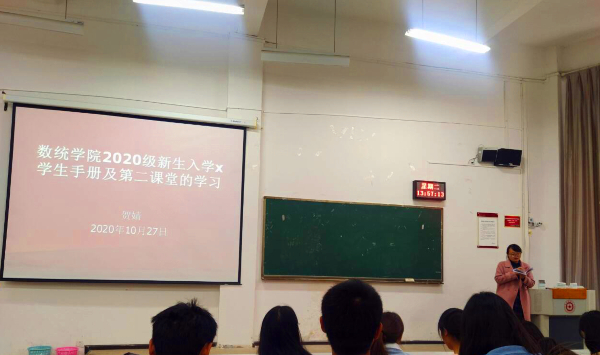 10月27日,公司在进学楼阶1-2教室开展了新生入学教育系列讲座之——校情介绍、员工手册及第二课堂学习。此次讲座由304永利集团经理焦建军教授和2020级辅导员贺婧老师主讲,304永利集团全体2020级新生参加。