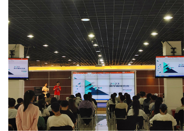此次数学趣味竞赛100人左右报名参加。竞赛共分三个环节:抢答、趣味测试和颁奖。抢答环节的题目是速算和逻辑推理题。在俱乐部的组织下,各小组积极讨论,踊跃回答,活动氛围良好。趣味测试环节的题目是不定积分和奥数题目。难度稍高的题目极具挑战性,各组成员直面挑战,交出了一份满意的答卷。活动最后进入了颁奖环节,俱乐部会长为本次活动中获得一等级、二等奖、三等奖和鼓励奖的小组进行颁奖,以示对取得优异成绩的小组给予肯定与鼓励。