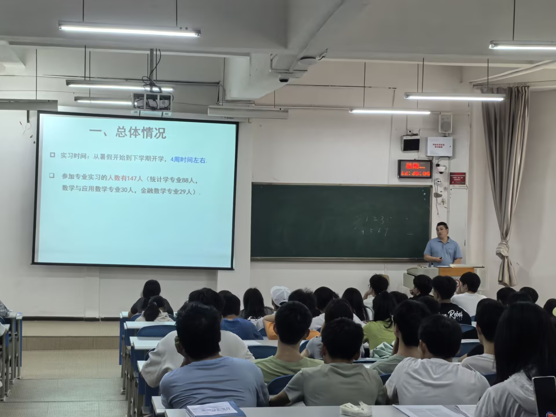 会上,应用数学系主任冯大河介绍了公司的专业实习工作方案。方案采用分散与集中相结合的方式,参加集中实习的员工到公司的签约实习基地实习,参加分散实习的员工自行联系实习单位。同学们可以根据自身实际情况,选择适合自己的实习方式。他强调了实习过程中需注意的安全事项,要求严格实习考勤纪律,确保实习活动顺利完成。