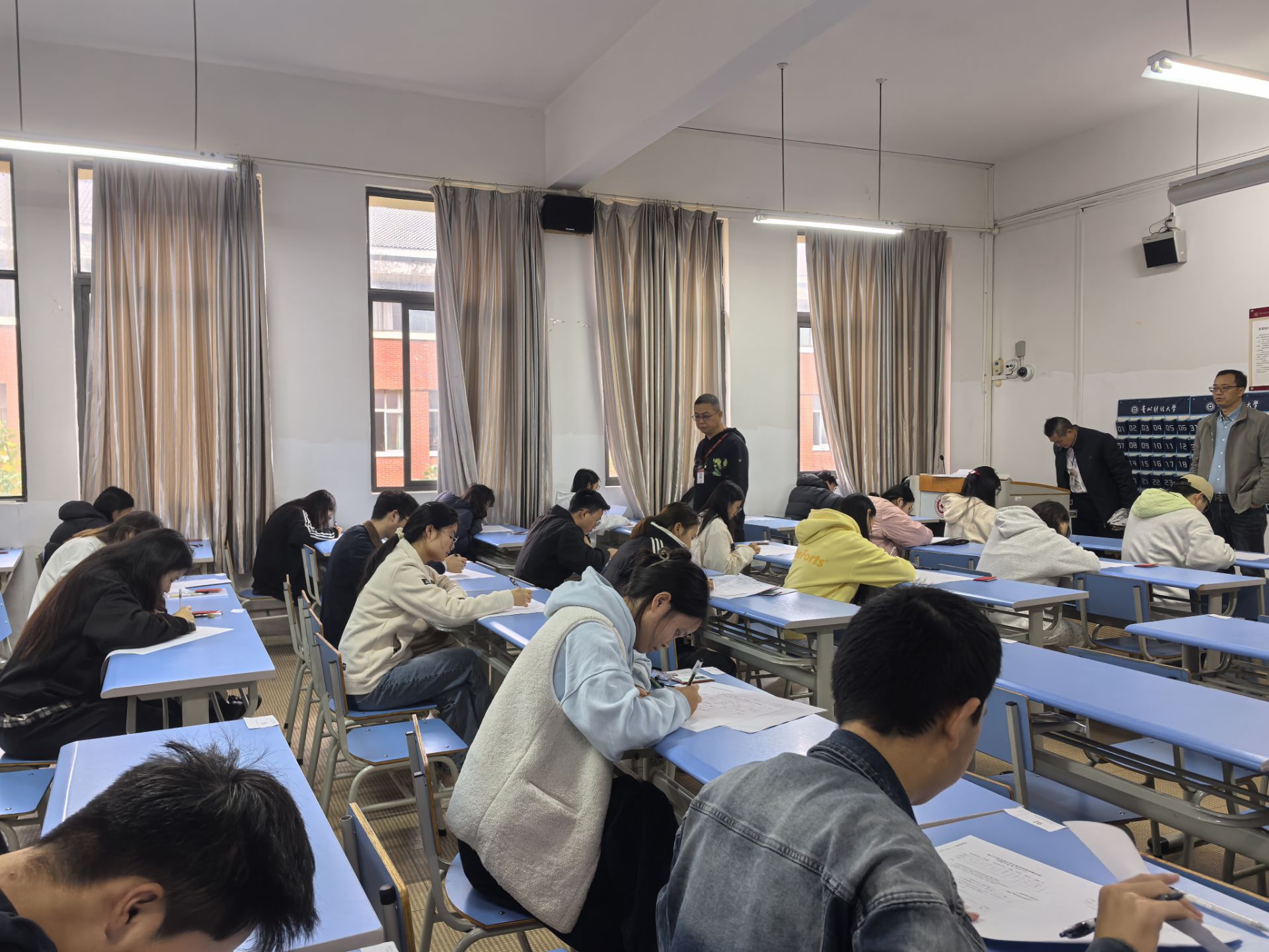 上午9点,304永利集团党委委员、数学与统计公司党委书记虞帆、应用数学系主任冯大河、竞赛负责人、基础数学教学部副主任舒亚东等前往竞赛现场巡查,了解竞赛情况。竞赛过程中,老师们严格监督,同学们认真答题,一派井然有序。
