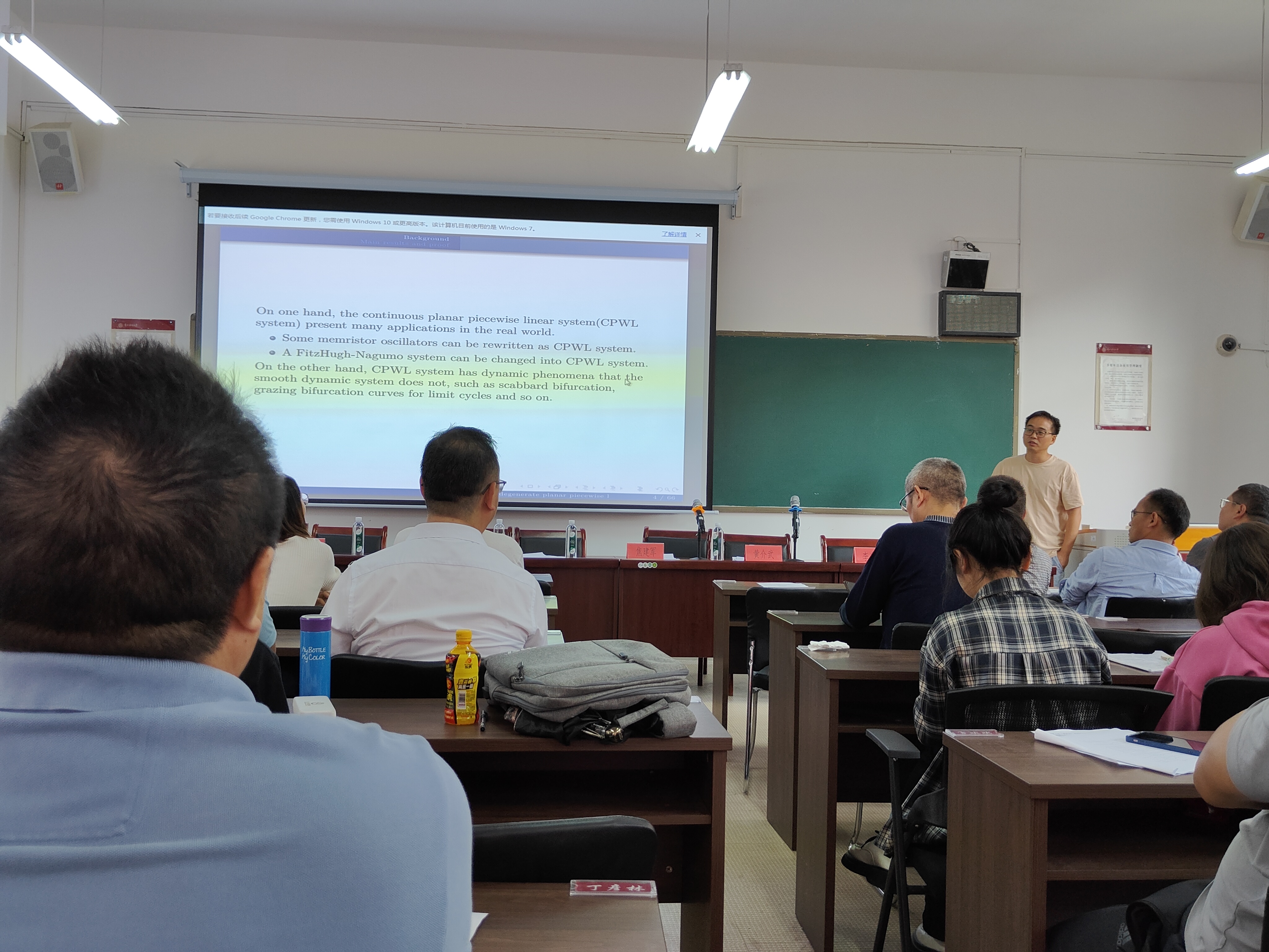 在专家报告阶段,凯里公司李光辉教授、贵州大学吴奎霖教授、贵州民族大学黄介武教授作了三场精彩的报告。李光辉教授以“混料试验设计理论的新进展”为题,阐述了以混料格点设计的相关理论为基础,研究解决多约束混料系统中的各类复杂设计问题,并将其应用于实际问题中。吴奎霖教授以“三区域的平面退化分段线性微分系统的动力学”为题,阐述了一个平面连续分段线性系统的退化子系统,证明了该系统至多有两个极限环,并且从中发现了一些新的分支现象。黄介武教授则从“如何写好科研项目申报书”入手,对各类基金项目申报选题、申报书撰写、存在的主要问题、申报经验与体会、其它相关注意事项等方面进行了分享。三场专家报告分别由冯大河教授、张千宏教授、段星德教授主持。
