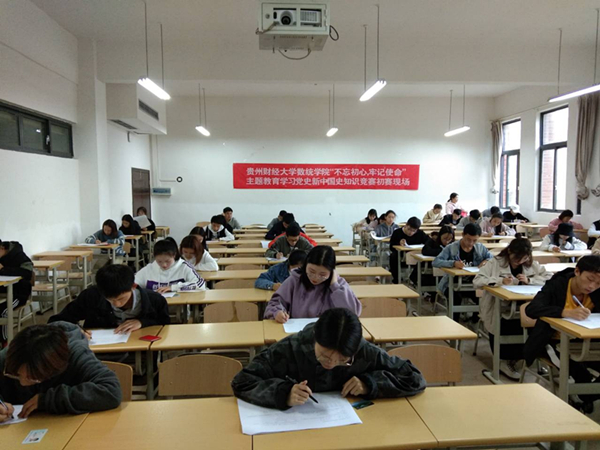 初赛以笔试形式进行,以党史、新中国史相关知识为基础,旨在考查同学们对党史、新中国史的了解程度。在测验过程中,同学们认真遵守竞赛规则,精神饱满,认真诚信作答,比赛现场气氛安静,秩序井然。初赛结束后,将从参赛同学中选拔出成绩靠前的十八名同学进入最终的决赛,决赛将以现场分组比赛的形式进行。