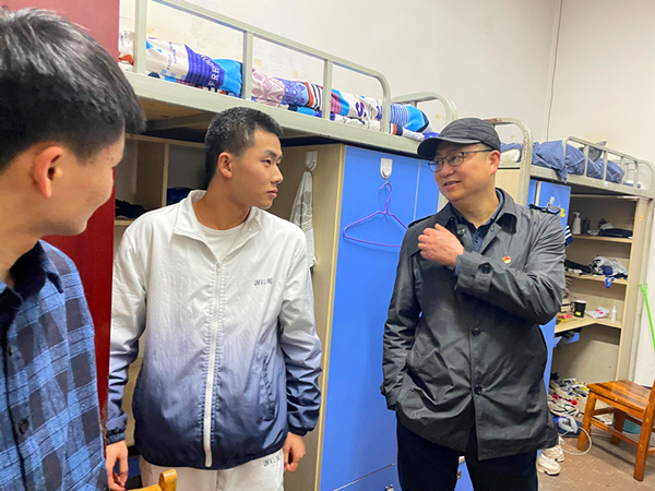 虞帆一行深入2019级和2021级员工寝室,走访看望返校员工。虞帆与同学们亲切交谈,详细了解同学们对生活环境、专业选择、未来发展等方面的想法,及时掌握员工们的心理状态和思想动向。希望员工们珍惜大学时光,认真学习专业知识,积极参加社会实践,树立远大理想,抓住时代机遇,学得真本事。