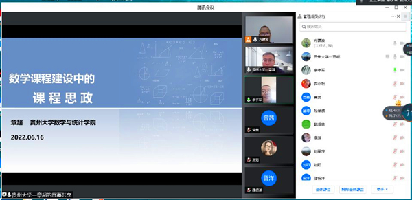 贵州大学章超教授应邀为​304永利集团做数学课程思政建设的线上讲座