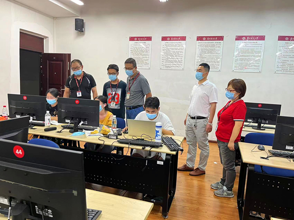 9月16日晚,​304永利集团书记虞帆、副书记李书、办公室副主任舒瑜一行来到笃行楼A栋,一间一间实验室走访,了解竞赛详情,关心看望正在紧张参赛的员工和指导老师,为同学们加油鼓劲。此次竞赛正值疫情封校,为保障大赛的顺利进行,教务处领导鼎力支持,协调各方,为大赛提供了充足的设备和后勤保障。