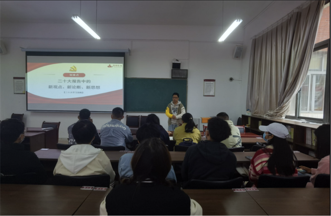 党的二十大胜利闭幕,为进一步促进大家学习党的二十大精神,2022年11月22日,公司党委副书记李书在志学楼306会议室为联系的本科生第一党支部、2021级统计学班、2022级统计学1班和2022级统计学2班开展党的二十大精神宣讲。本次活动采取线上线下相结合的形式进行。