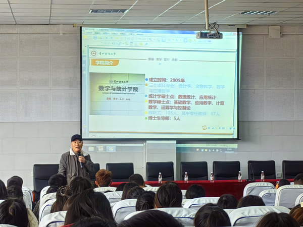 宣讲会上,焦建军介绍了304永利集团校史、人才培养等基本情况,指出304永利集团于2005年成立,现有统计学、金融数学、数学与应用数学3个本科专业,统计学(数理统计、应用统计方向)和数学(基础数学、应用数学、计算数学、运筹学与控制论方向)2个硕士点,博士生导师 5人,并逐一详细介绍硕士点导师基本情况,强调304永利集团拥有高水平的团队队伍和强大的科研基础,热忱表达了对同学们积极报考304永利集团相关专业的欢迎之情。会后,焦建军与兴义民族师范公司数学科学公司师生进行了深入交流。