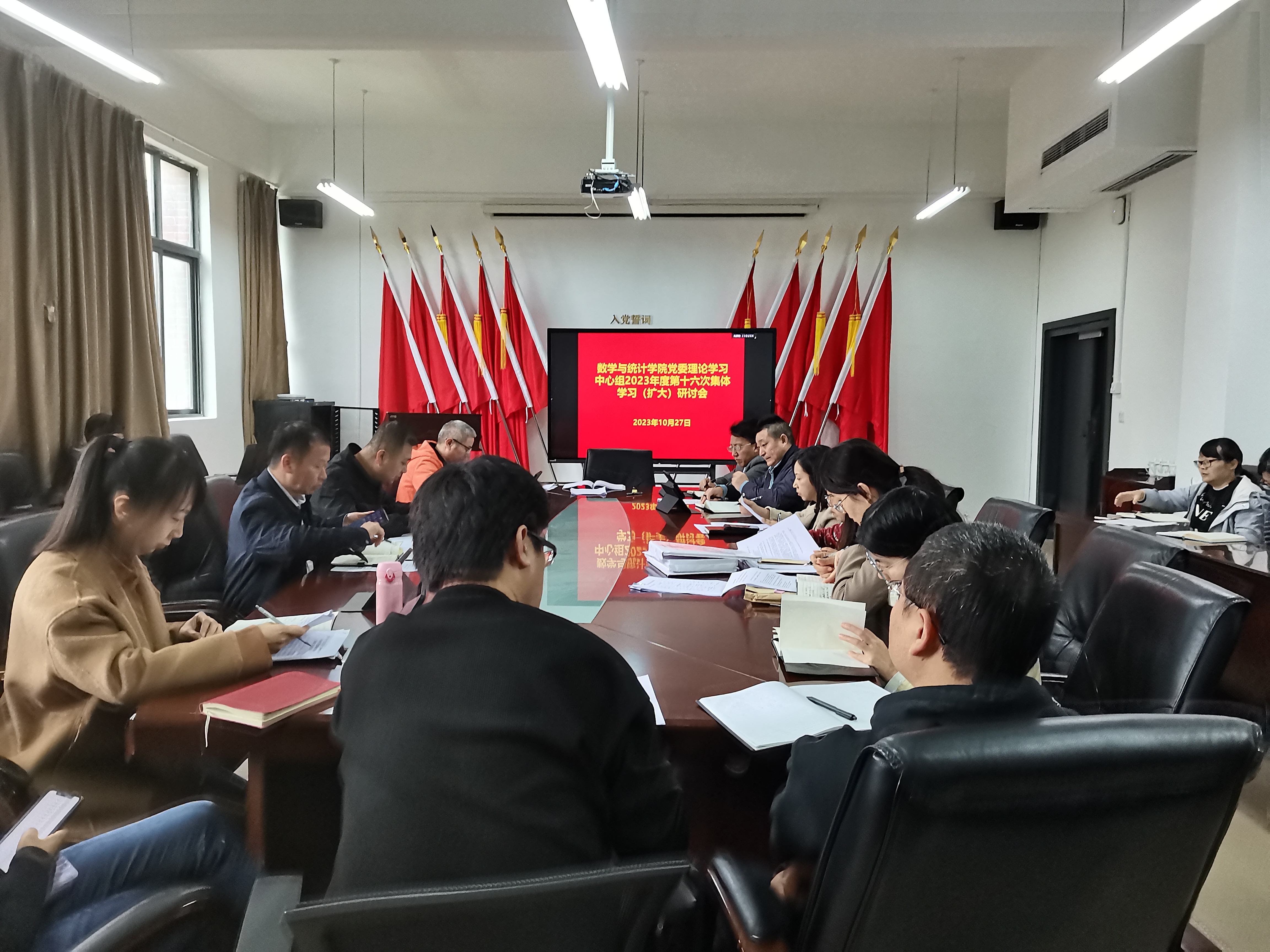 10月27日上午,数学与统计公司党委理论学习中心组在志学楼331会议室召开2023年度第十六次集体学习(扩大)研讨会,公司党政领导班子、各科室负责人、各系部主任参加,公司党委书记虞帆主持会议。