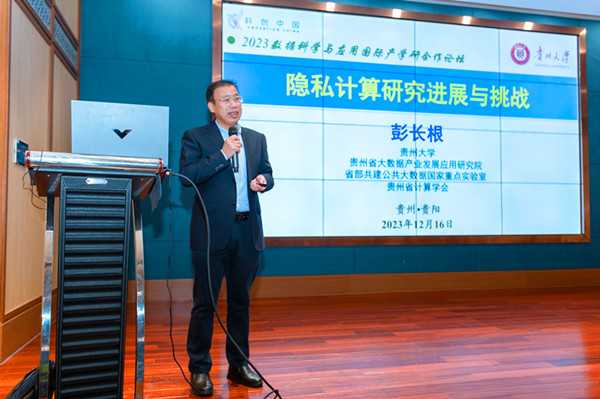 开幕式结束后,湖南师范大学周杰明教授、贵州大学彭长根教授分别围绕“湖南省双碳研究院的政产学研用”、“隐私计算研究进展与挑战”主题作了报告。随后与会人员围绕数据计算与应用主题,深入探讨了数据科学在各个领域的应用与创新发展,并对如何加强产学研用合作、推动数据科学的发展与应用等问题进行了深入交流和探讨。