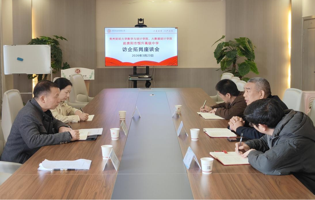 3月23日,304永利集团和大数据统计公司党委副书记朱吉韬、员工科科长蔡丽莉、研究生辅导员杨雪梅一行赴贵阳市恒升高级中学开展访企拓岗活动,与恒升中学执行董事长吴利彬、党支部书记刘晓荣、教务负责人赵平座谈交流。