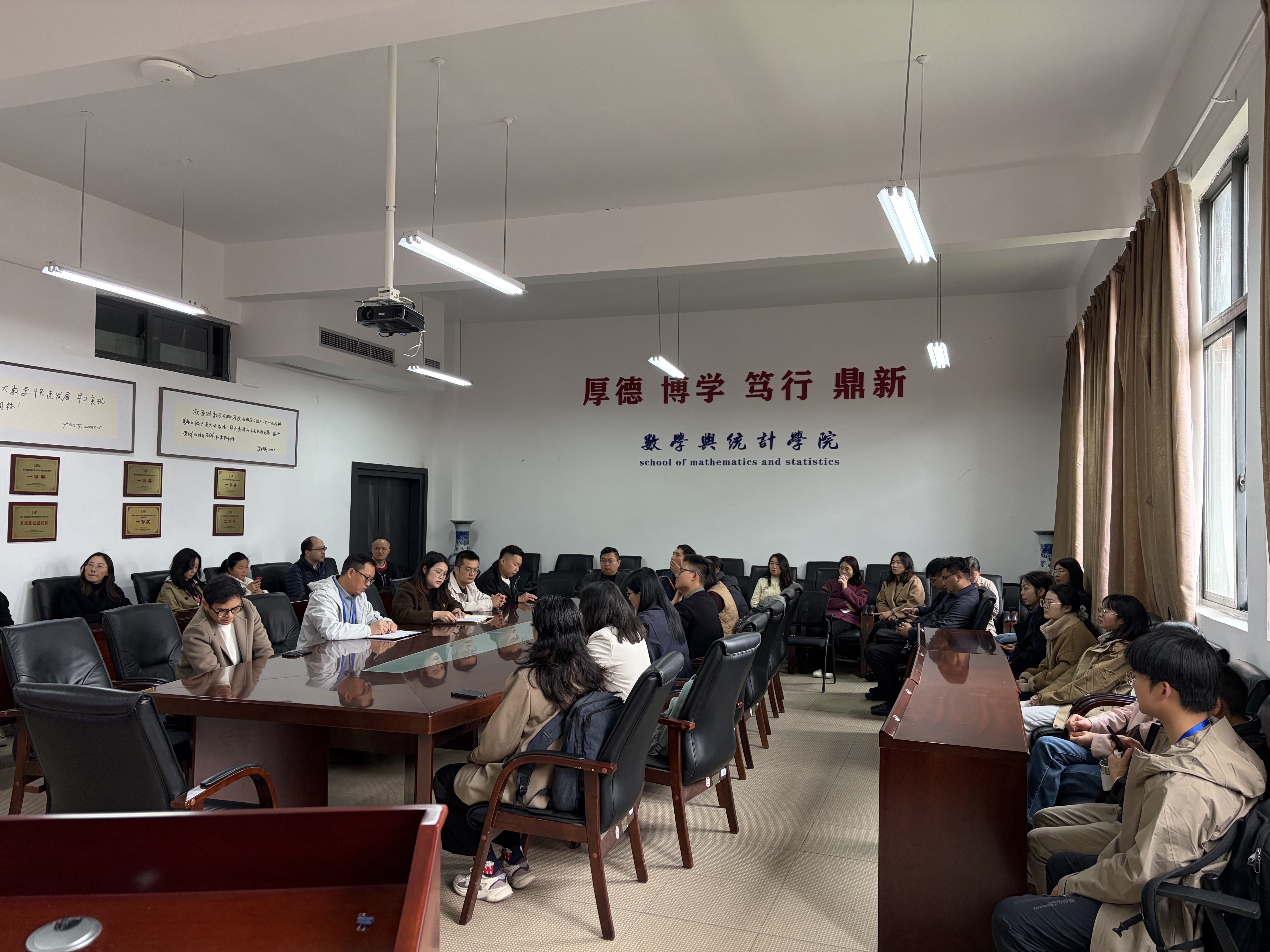 在自由交流环节,双方教师围绕统计学前沿问题、结合各自研究方向展开了深入讨论和交流,积极分享了研究心得与教学经验,碰撞出许多新的思路与想法。大家还就统计学科在科研创新、人才培养以及服务地方经济社会发展中的具体实践进行了探讨,为推动党建与团队建设的深度融合提供了丰富的案例与经验。