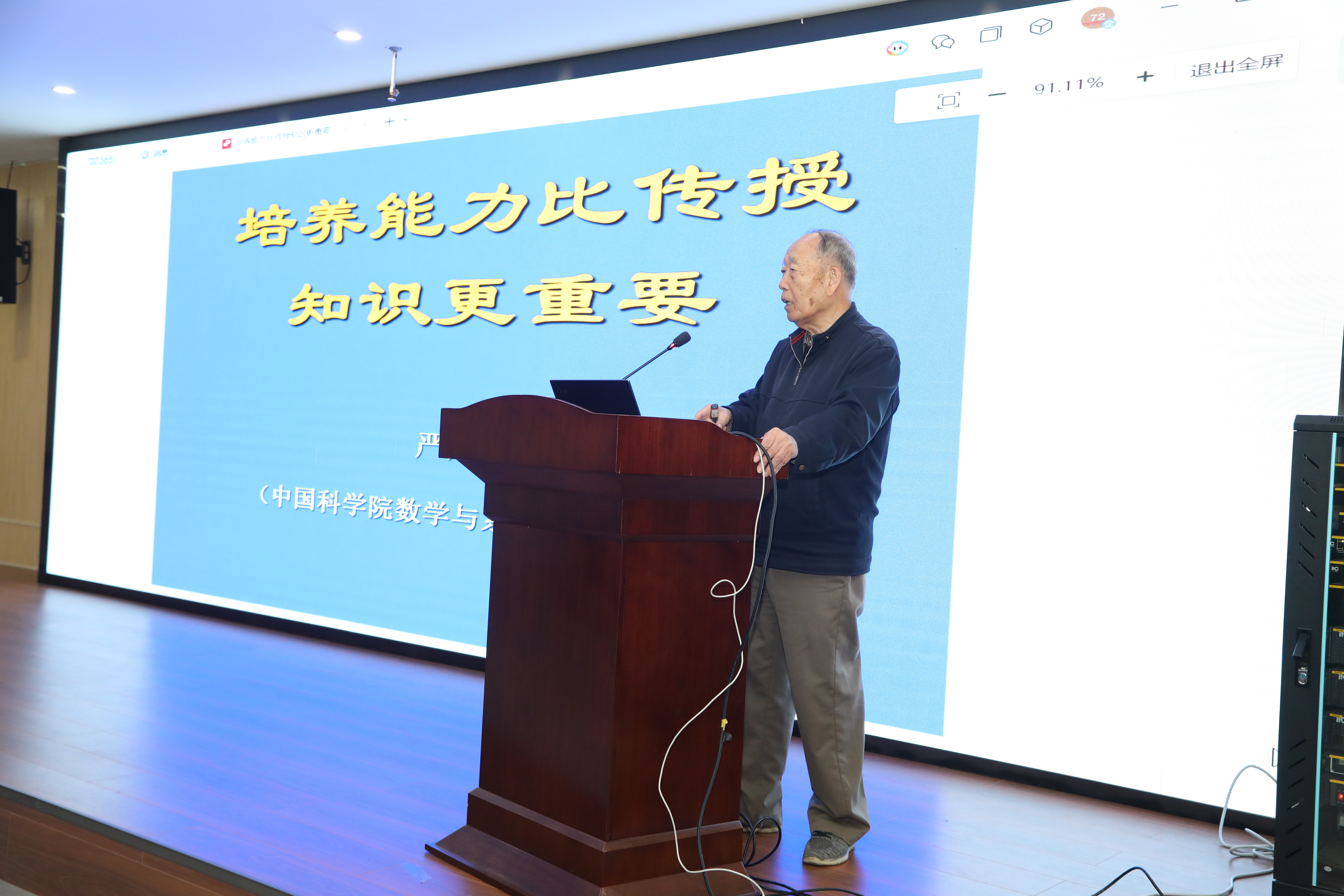 报告会上,严加安院士以《培养能力比传授知识更重要》为主题,围绕大学教育的核心议题展开分享,从大学教育的目标出发,层层递进地阐释了能力培养在人才培育中的核心地位。他直言,大学教育的本质并非单纯的知识灌输,而是以知识为载体,培育员工终身学习、独立思考与解决实际问题的能力,这才是员工适应社会发展的根本。