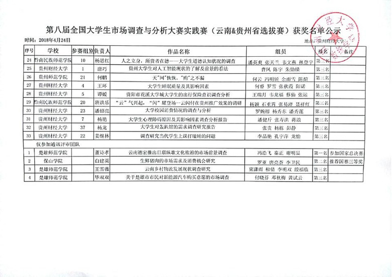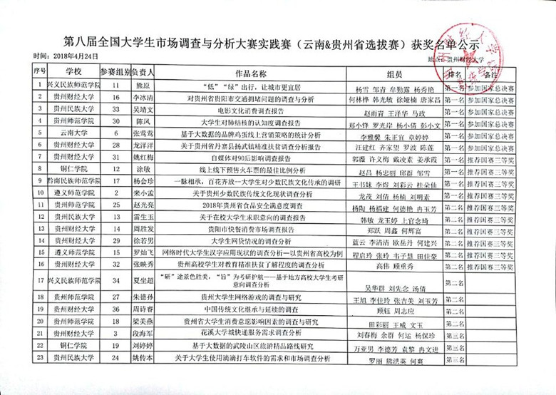 第八届全国老员工市场调查与分析大赛实践赛(云南&贵州省选拔赛)获奖名单公示
