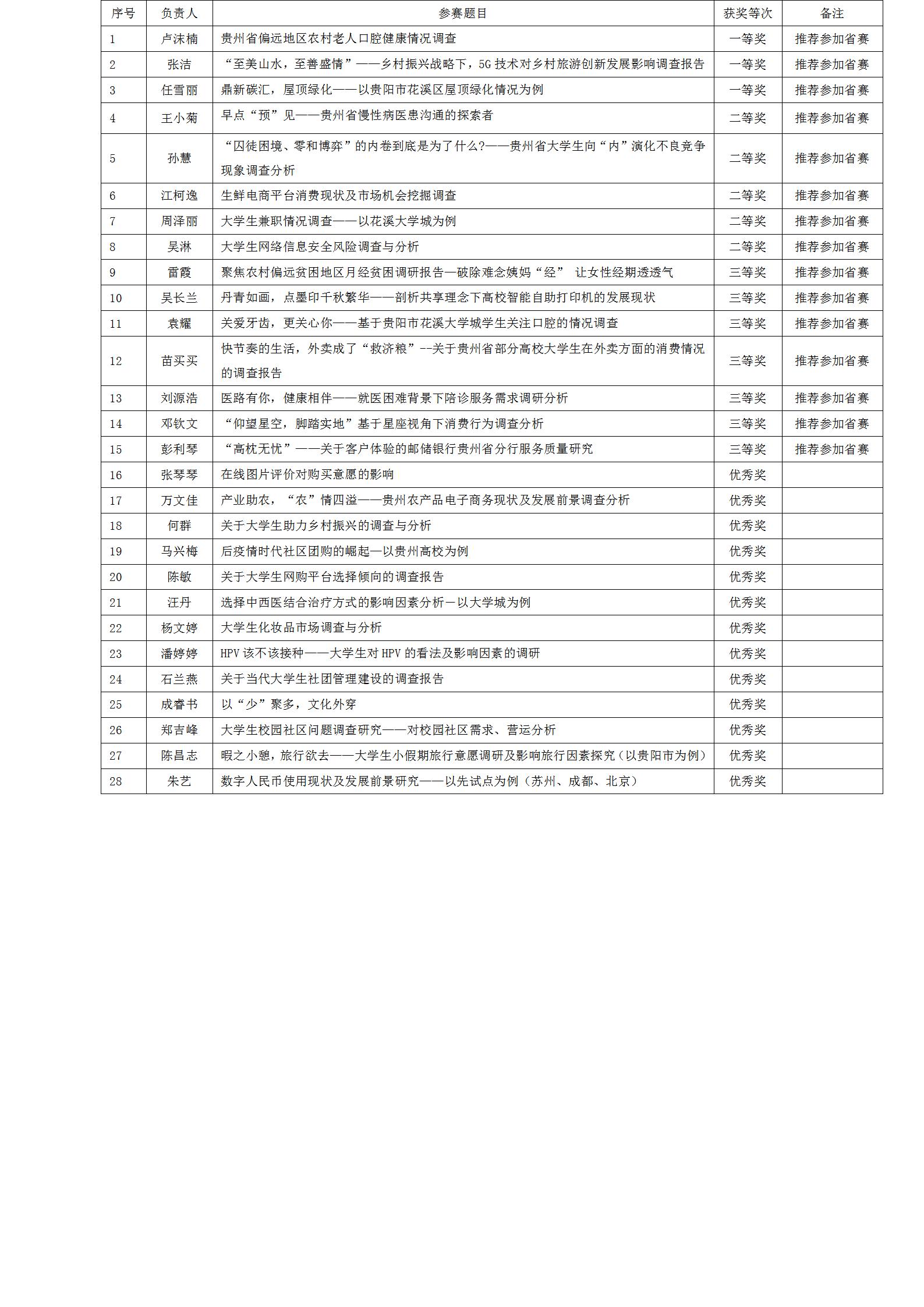 第十二届全国老员工市场调查与分析大赛304永利集团校赛于3月29日结束,本次大赛校赛最终提交报告总队数为28队。经专家评审,本着公平公正、优中择优的原则,结合组委会对参赛高校总队数限制,现将本次校赛获奖情况名单公布如下: