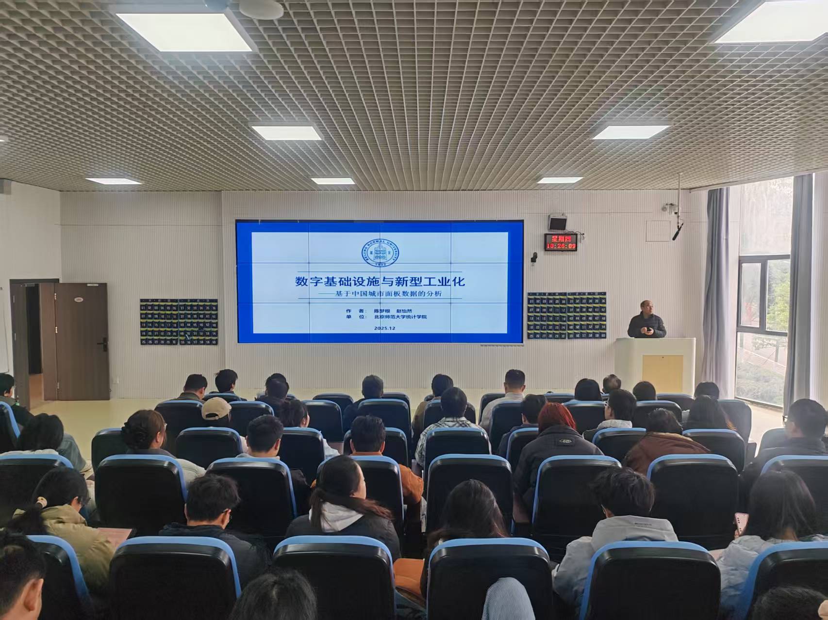 陈梦根以“数字基础设施与新型工业化—基于城市面板数据的考察”为题,首先简单介绍了研究背景,指出实现新型工业化是以中国式现代化全面推进强国建设、民族复兴伟业的关键支撑与内在要求。其次,在理论层面系统阐释了数字基础设施推进新型工业化的内在机制,并基于2011—2022年中国285个城市面板数据开展实证检验。陈教授的研究证实,数字基础设施建设能够有效推进新型工业化进程,且其影响效应在城市整体发展条件、资源禀赋、工业发展基础和交通通达度等多个维度上表现出显著异质性。此外,陈教授研究的机制分析表明,数字基础设施能够形成知识溢出机制和要素整合机制,进而提升地区新型工业化水平。