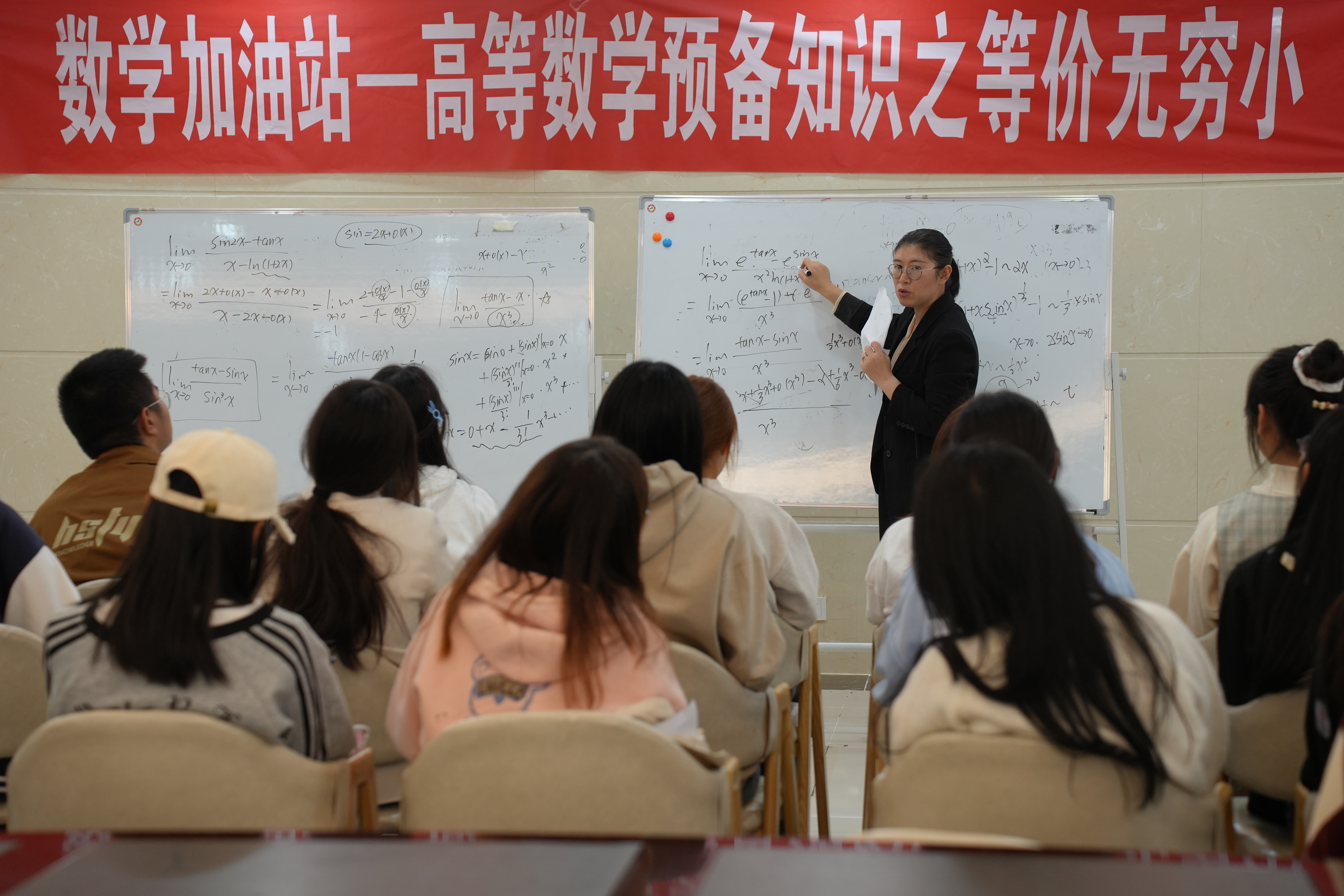 “数学加油站”向同学们展现数学知识的魅力,吸引大家能够更努力地探索数学世界的奥秘。帮助同学们建立学习数学的信心,提高数学能力和水平,增强数学应用能力和逻辑思维能力。这次活动让同学们认识到等价无穷小这一概念,并学会应用于解题当中,同学们都受益匪浅。