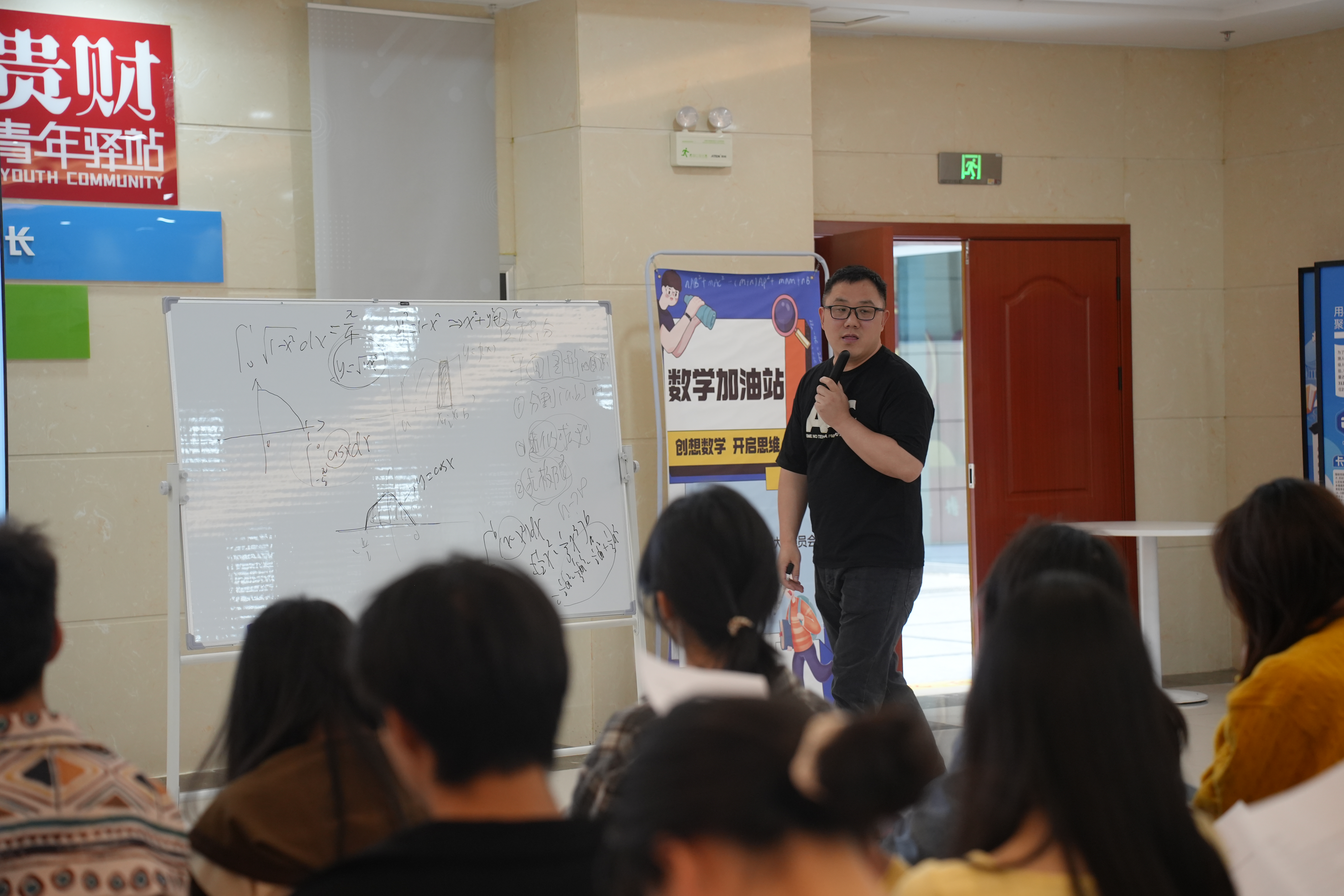 活动开始,丁彦林列出定积分的六大题型,以从简单到复杂的递进方式并运用数形结合,引导同学们深入思考,逐步解答难题,并从例题给同学讲解定积分难题的解题方法,传授给同学们解题小技巧。通过讲解每种题型的一道例题,让同学们自己动手解答其余题型,加深了对定积分的理解和记忆。